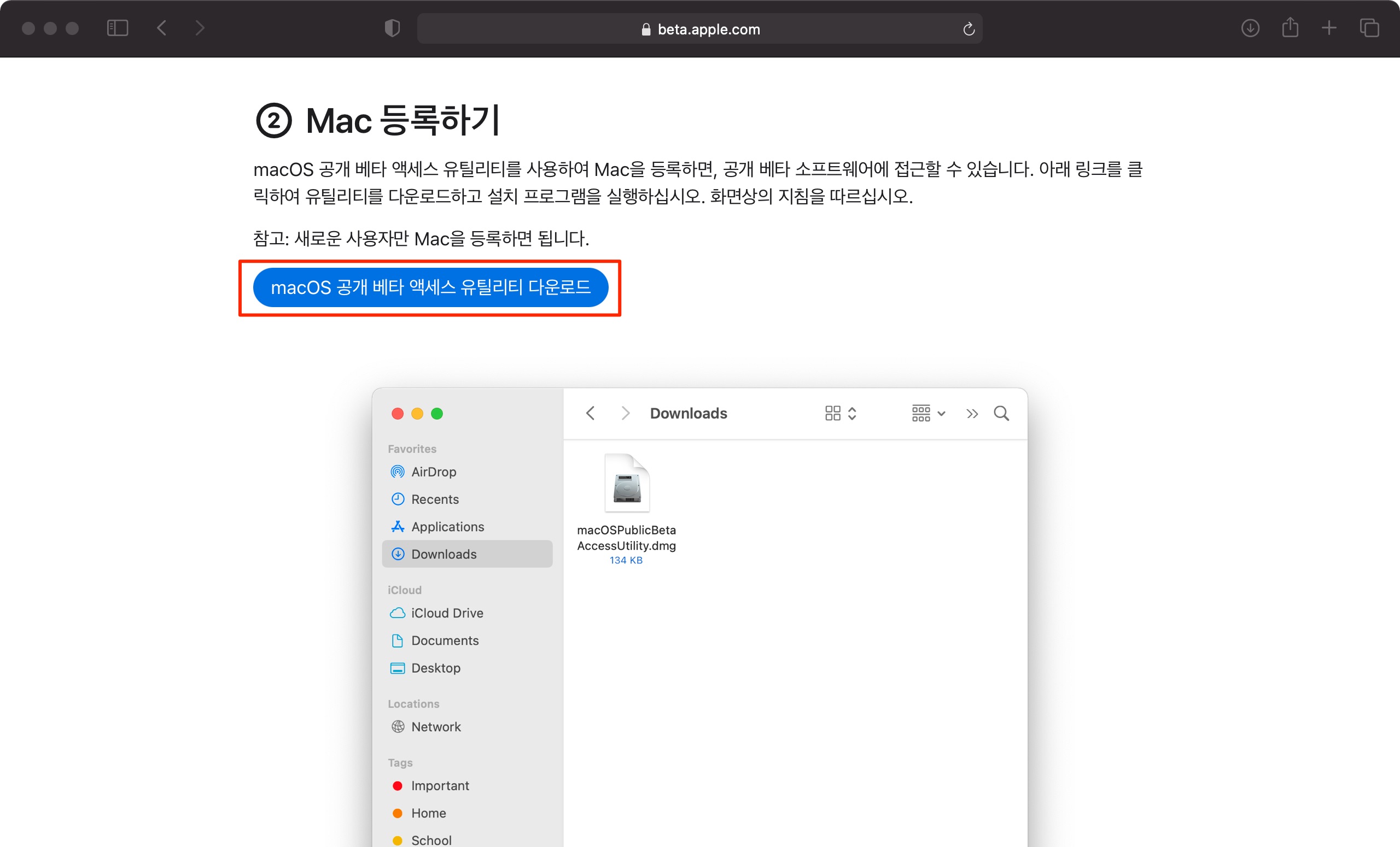 내 Mac을 등록하기 위해서 아래의 [macOS 공개 베타 액세스 유틸리티]를 다운로드한 후 설치합니다.